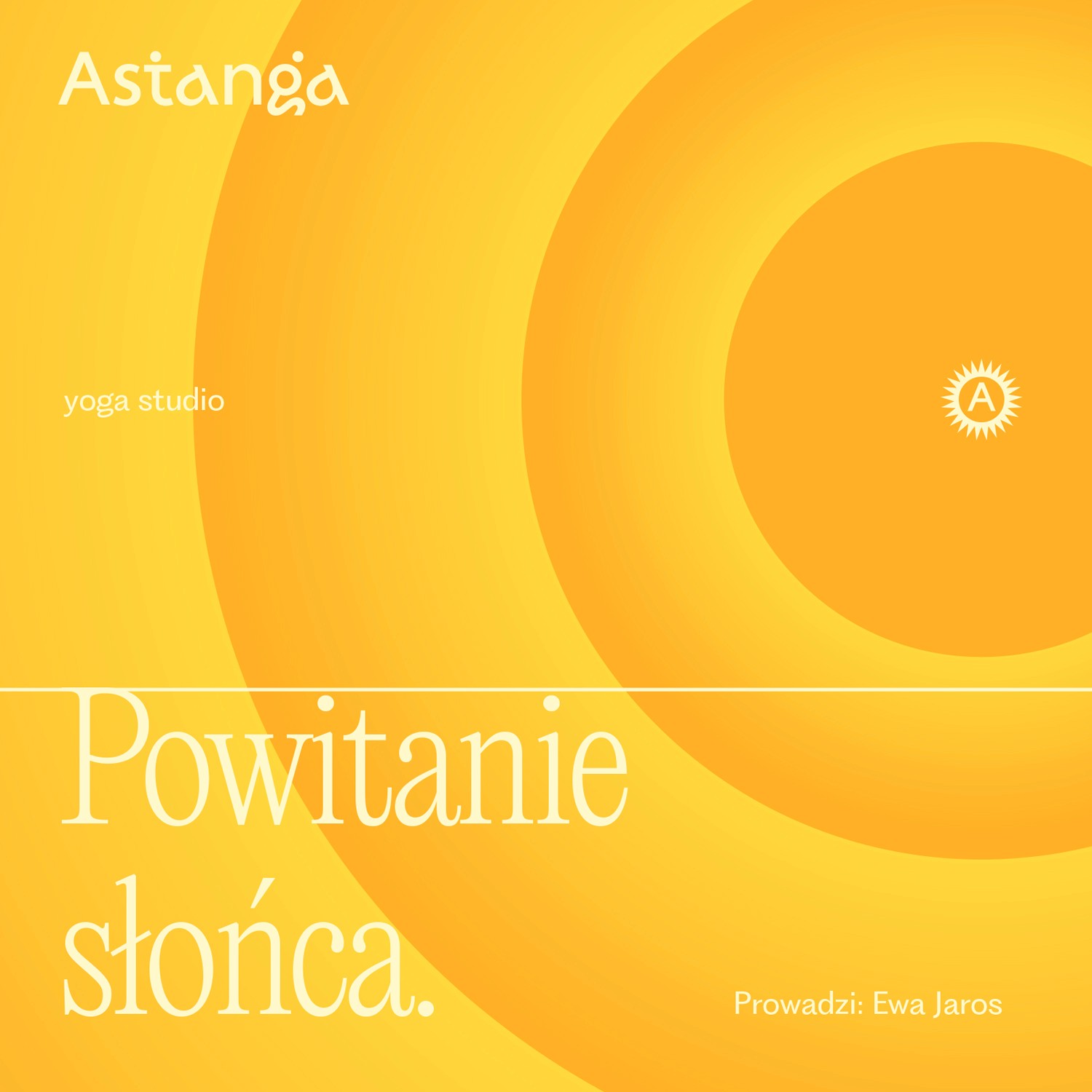 Słońce oraz energia - zarówno kinetyczna jak i emocjonalna - posłużyły nam do zbudowania charakterystycznego elementu graficznego, który stał się podstawą systemu identyfikacji. Ciepło stało się głównym motywem przewodnim podkreślając podejście instruktorów, jak i domową atmosferę samej przestrzeni.