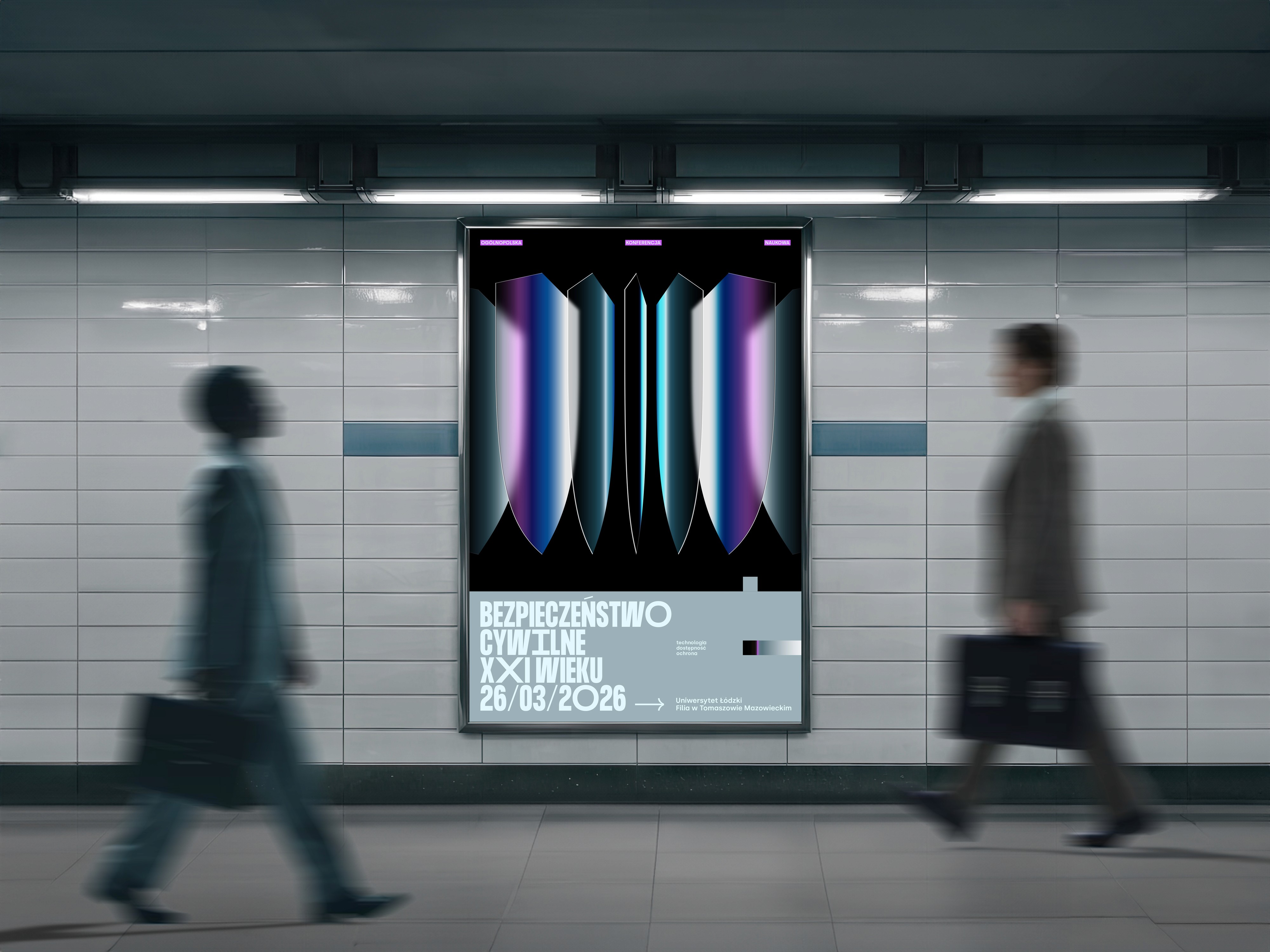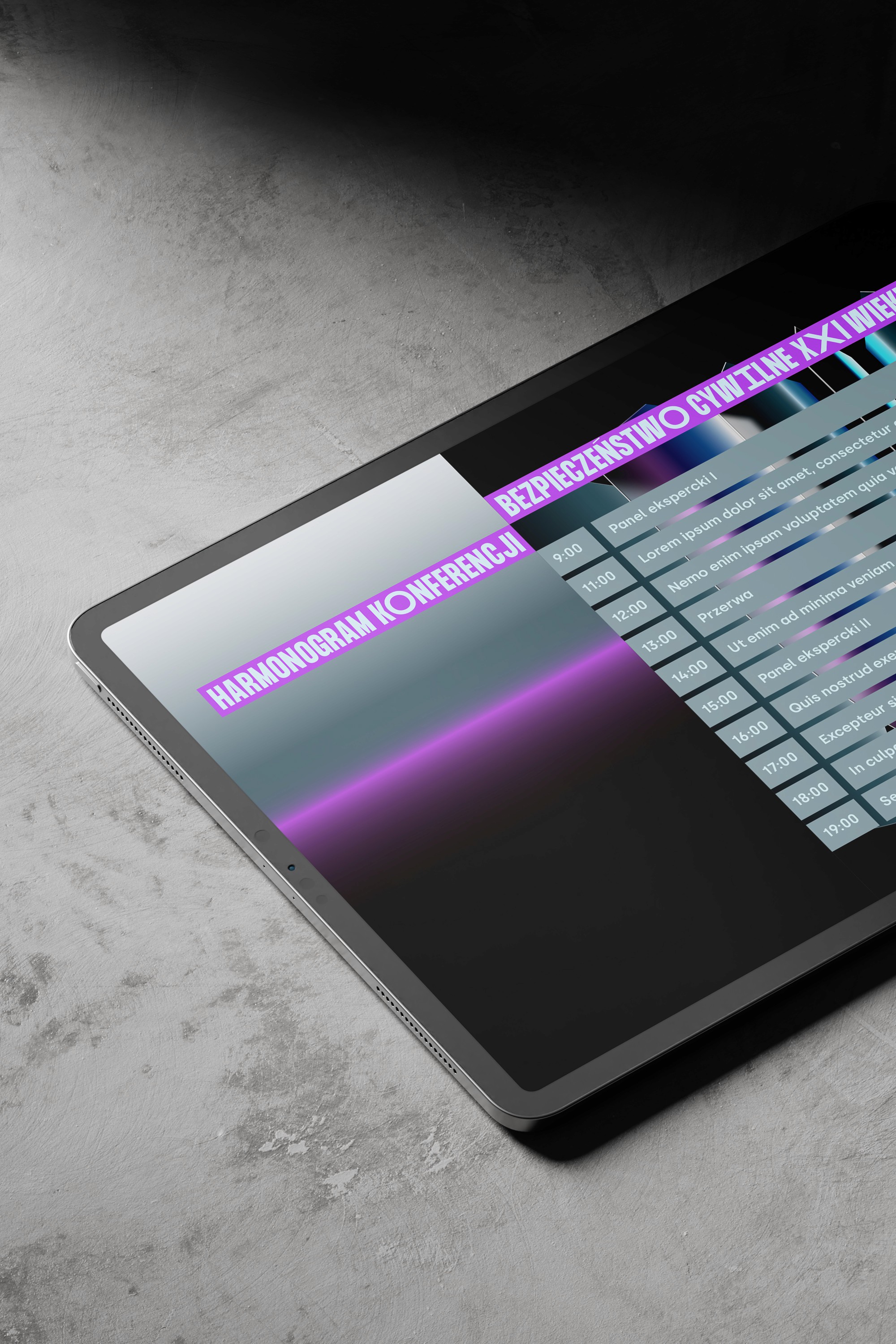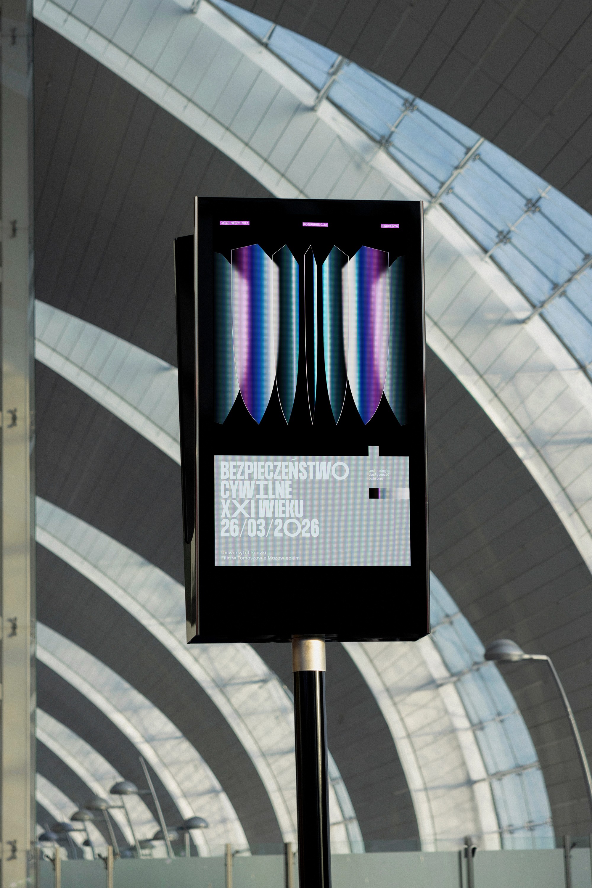 Postawiliśmy na mocny i charakterystyczny key visual, który jest fundamentem identyfikacji całej konferencji. Cyfrowe tarcze budują wrażenie obronności, jednocześnie nawiązując do otwartych stron publikacji symbolizując w ten sposób różnorodność tematów poruszanych na wydarzeniu.