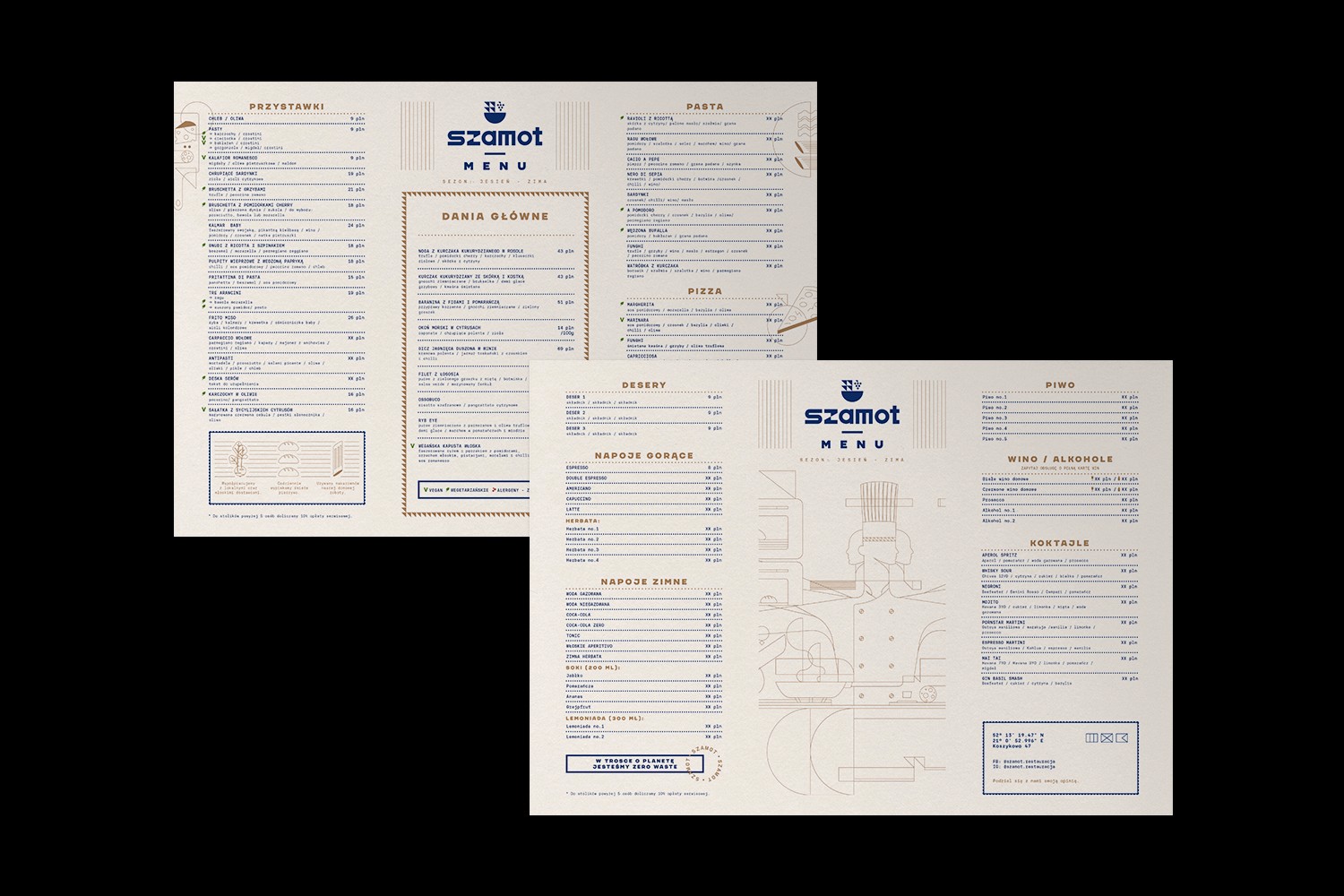 Koncept narodził się z pasji grupy przyjaciół do podróży, wspólnego celebrowania dobrych chwil i miłości do jedzenia. Szamot to autorska kuchnia Italian fusion, balansująca pomiędzy tradycją a nowoczesnym podejściem gastronomicznym.